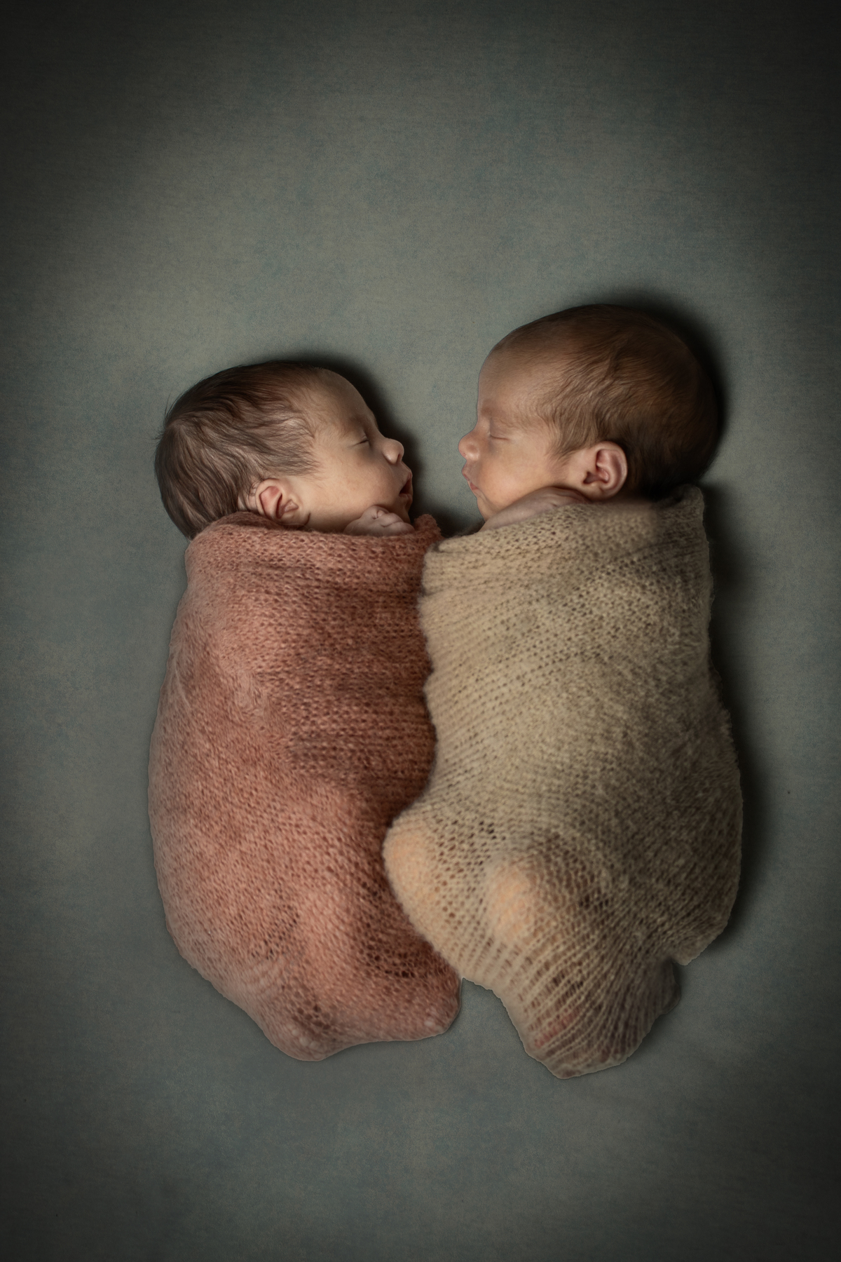 mellizos recién nacidos sesión newborn fotografía de bebés estudio fotográfico familiar fotos artísticas newborn fotógrafo de recién nacidos en Rosario fotografía newborn creativa bebés en wraps sesión gemelos